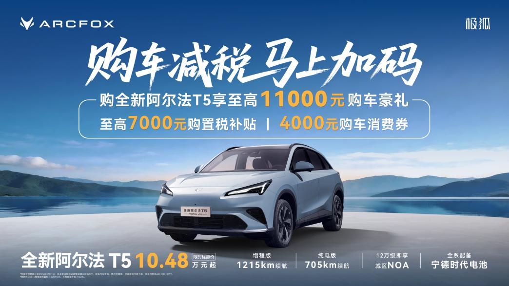 全新阿尔法T5以10.48万元起的限时优惠价登场。该车提供增程版与纯电版两种选择,增程版CLTC综合续航达1215km,纯电续航215km可满足一周城市通勤,纯电版续航更是达到705km,搭载北汽神擎增程技术,解决了传统增程车的续航焦虑、馈电性能衰减、噪音抖动三大痛点。