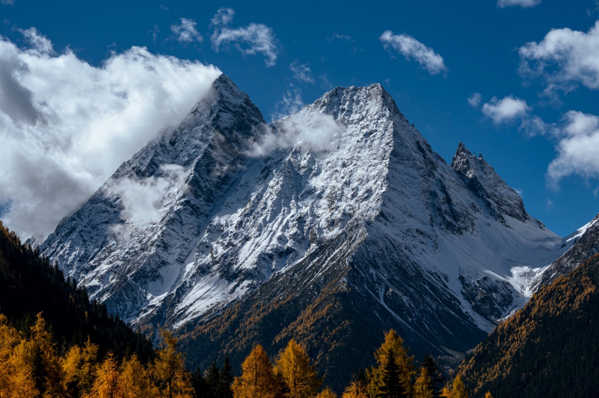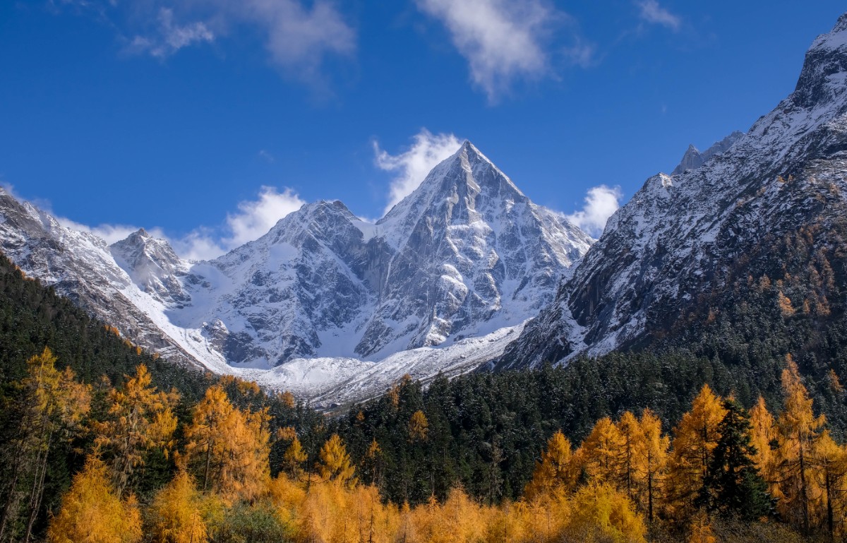 如果想稍微动一动,丹巴党岭葫芦海的轻徒步路线很适合。从停车场徒步1小时就能抵达湖边,沿途是原始森林,秋季层林尽染,冬季白雪覆山。湖水清澈如镜,倒映着周围的雪山,几乎看不到旅行团的身影,一个人慢慢走、慢慢拍,在脚步与风声里,找回被生活打乱的节奏。
